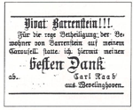Hier wurden geistige Getränke für den Eigengebrauch hergestellt. Es war ein aus Zuckerrüben gebrannter Schnaps, der „Knorri Brandi“ genannt wurde. Man beschloss eine Kirmesgesellschaft zu gründen und einmal im Jahr ein Fest für alle Barrensteiner zu organisieren.